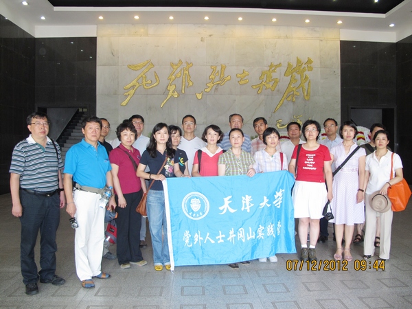 天津大学党外人士井冈山实践营营员在井冈山烈士陵园纪念堂合影