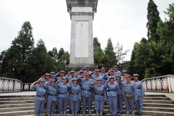 天津大学党外人士井冈山实践营营员在黄洋界保卫战胜利纪念碑(竖碑)前合影