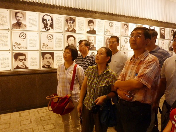 天津大学党外人士井冈山实践营营员在井冈山烈士陵园瞻仰大厅陈列室参观