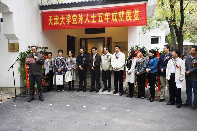 全国人大代表、九三学社中央委员、九三学社天津市委副主委、天津大学教务处处长张凤宝为开幕式致辞,并转达了天津市政协副主席、九三学社天津市委主委陈永川对本次展览的热烈祝贺。张凤宝说,天津大学党委历来重视党的统一战线工作,对各民主党派成员和无党派人士在政治上关心、工作中支持、生活中照顾,创造了和谐、民主、团结的氛围。他表示,今后要继续同中国共产党风雨同舟,始终坚持科学发展,努力践行社会主义核心价值观,为全面建设小康社会、构建社会主义和谐社会作出新贡献,共同铸就天津大学新的辉煌。