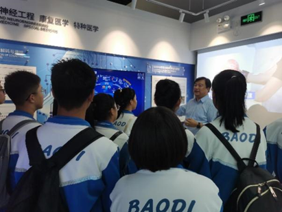 接着代表团在何峰老师的带领下参观了天津大学医学院。在“兴医之路”主题教育馆,中学生们深入了解了天津大学医学院发展的历史沿革、专业设置、学科建设等多方面情况。在智慧手术室和智慧ICU,通过现场展示和解说,中学生们了解了工程技术在医学领域的应用和未来的发展趋势。这不仅拓宽了中学生们的视野,也让他们对未来的学术探索充满了期待。