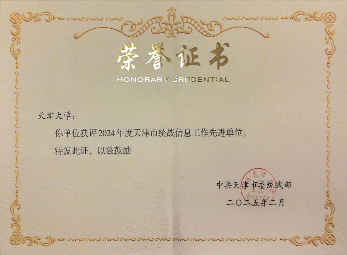 本次共表彰信息工作先进单位44个,其中包含3所高校。我校获评2024年度天津市统战信息工作先进单位。统战部副部长王莹被评为天津市统战工作优秀信息员。通报表扬理论政策研究成果50篇,我校共报送6篇,其中法学院熊文钊、王楚克撰写的论文《中国共产党推进中华民族共同体建设的制度实践与基本经验》成绩突出,受到通报表扬。