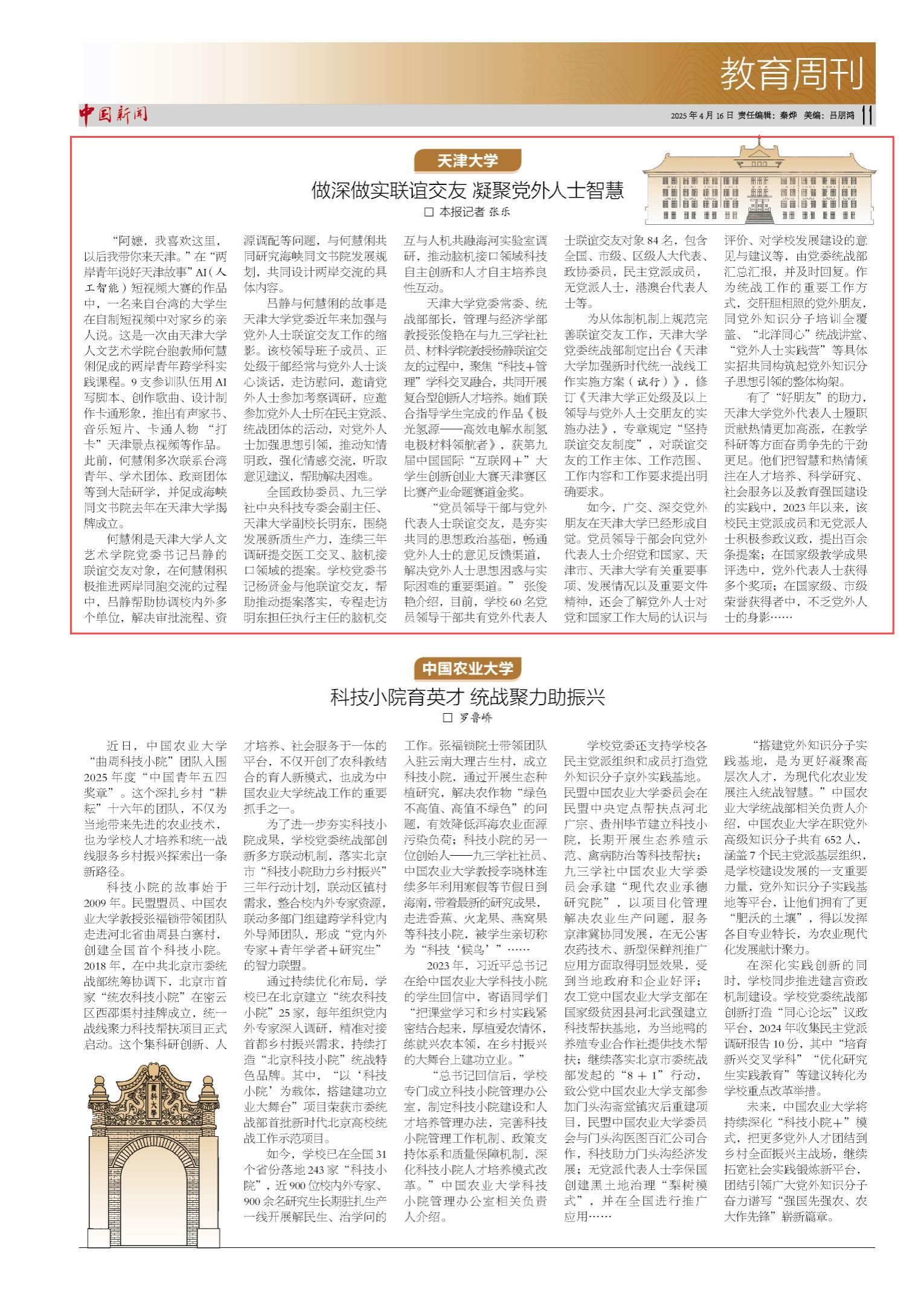 有了“好朋友”的助力,天津大学党外代表人士履职贡献热情更加高涨,在教学科研等方面奋勇争先的干劲更足。他们把智慧和热情倾注在人才培养、科学研究、社会服务以及教育强国建设的实践中,2023年以来,该校民主党派成员和无党派人士积极参政议政,提出百余条提案;在国家级教学成果评选中,党外代表人士获得多个奖项;在国家级、市级荣誉获得者中,不乏党外人士的身影……