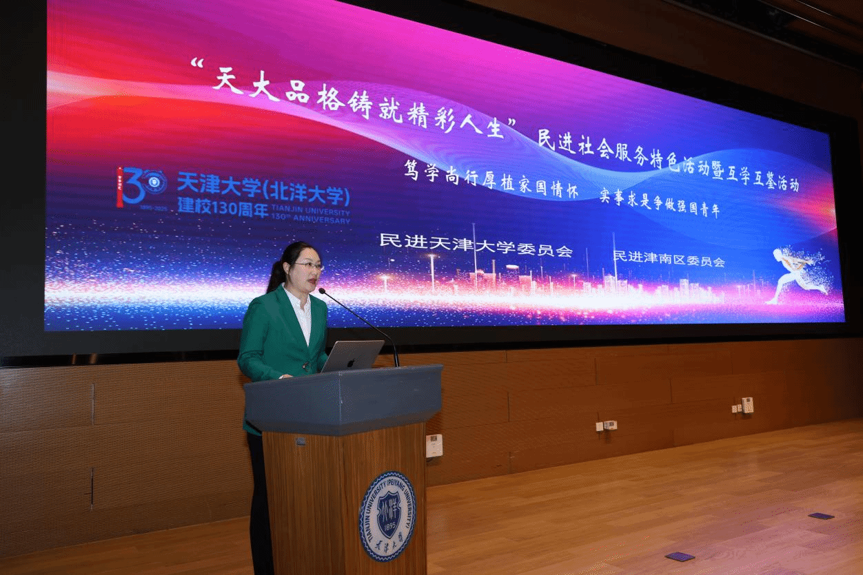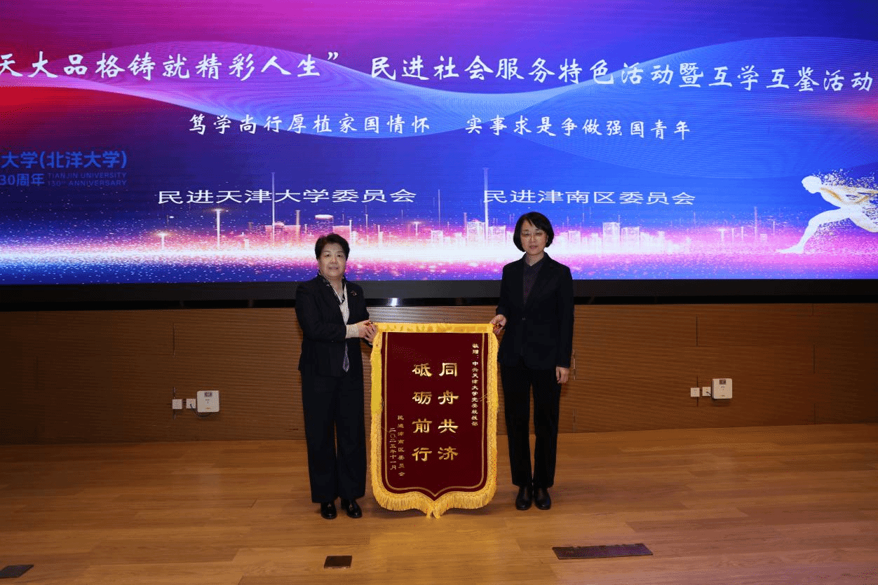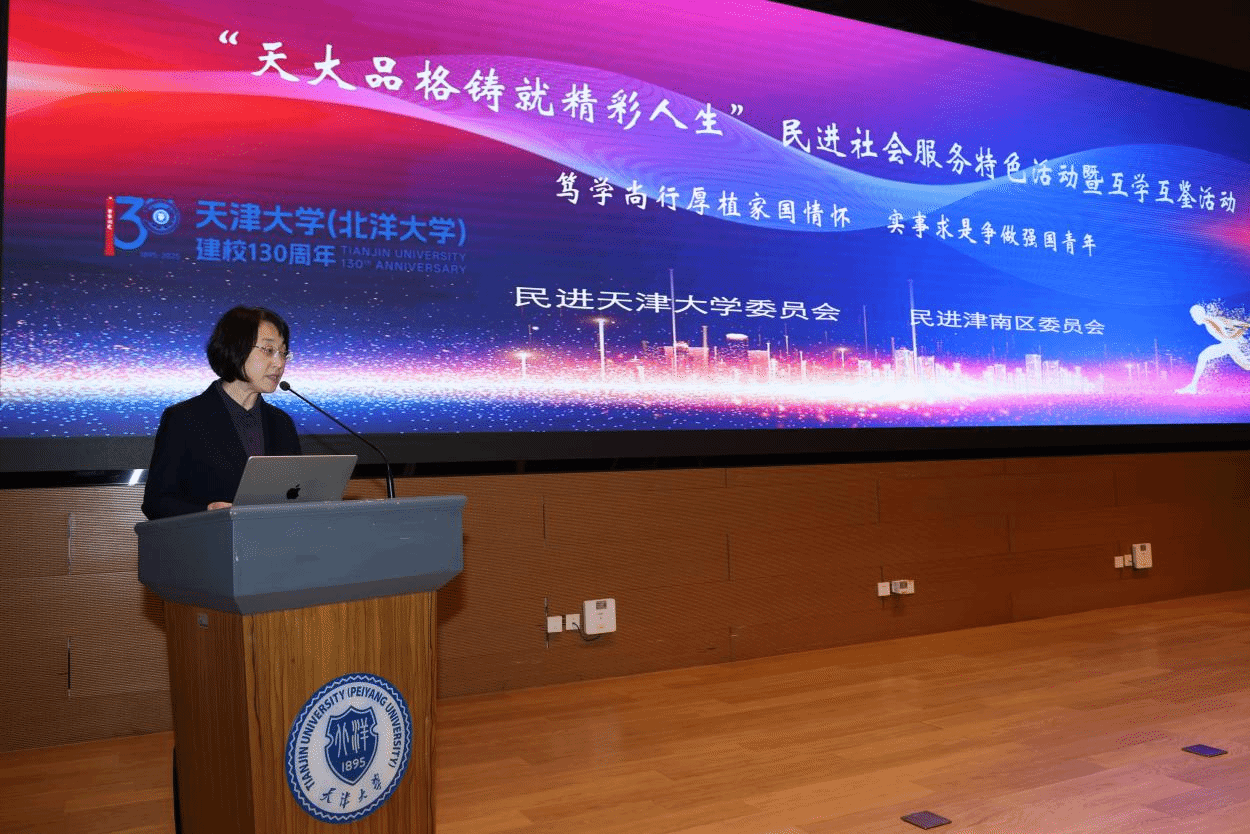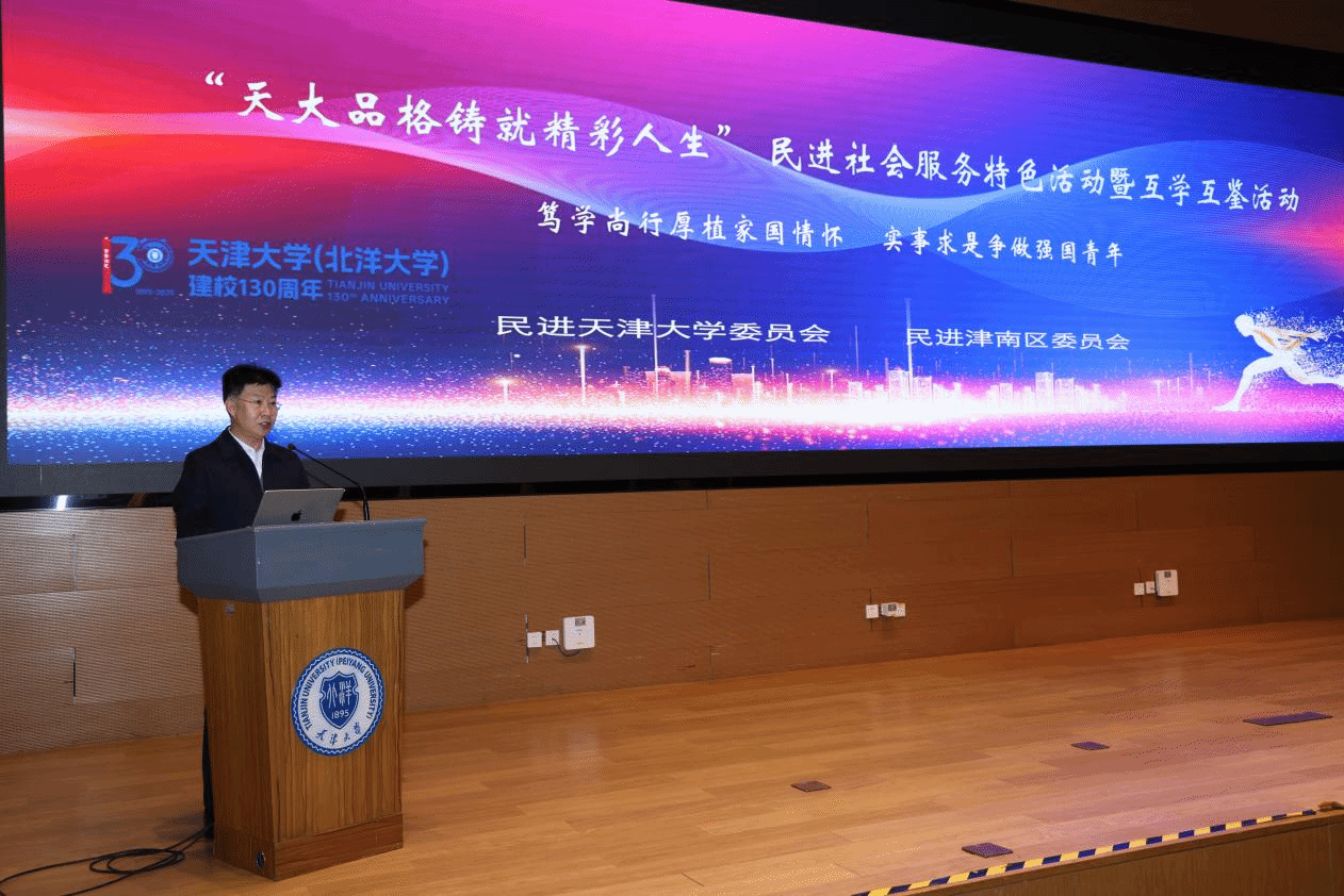 2025年11月18日下午,由民进天津大学委员会与民进津南区委会联合主办的第六季“天大品格铸就精彩人生”民进社会服务特色活动暨互学互鉴活动在天津大学北洋园校区成功举办。津南区委常委、区委统战部部长刘振河,津南区政协副主席、民进津南区委会主委刘颜明,天津大学党委常委、统战部部长张俊艳等领导出席活动,津南区各民主党派代表、民进天津大学委员会代表、咸水沽第二中学百名师生共同参与。