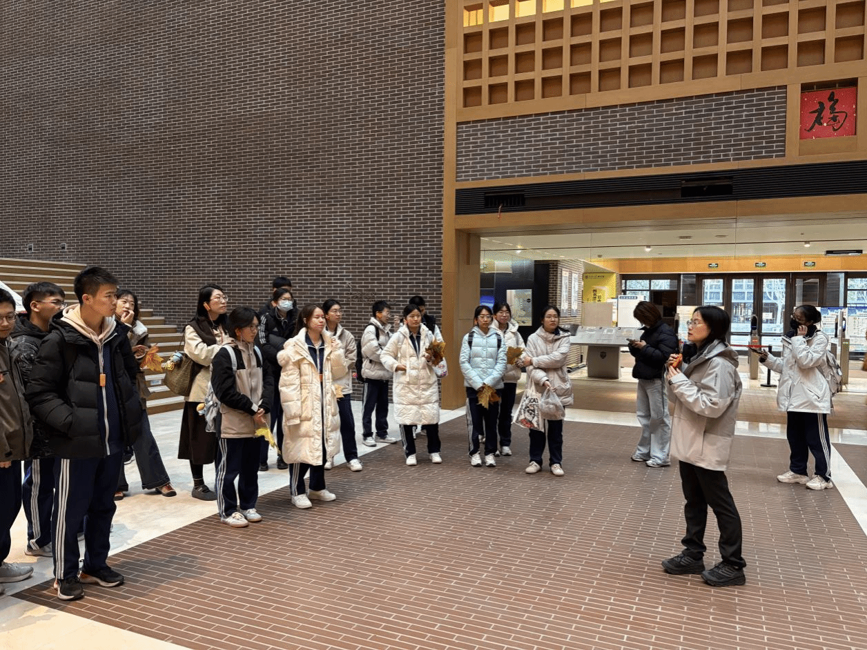 在随后的参观环节中,师生们先后走进郑东图书馆与大型地震工程模拟研究设施,开启了一场沉浸式的天大体验之旅。深秋的北洋园校区,金黄的银杏与赤红的枫叶交织成绚丽的画卷。在郑东图书馆前,不少同学被飘落的秋叶吸引,俯身拾起形状各异的落叶,小心翼翼地夹进笔记本中,将这所百年学府的秋日韵味珍藏为青春的纪念。步入图书馆,智能化的学习空间与安静浓厚的研修氛围形成了鲜明对比。同学们轻触查询屏,体验着信息化检索的便捷;在专题书架区流连忘返,对海量藏书发出阵阵赞叹。